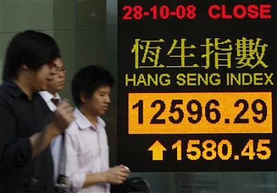 Bolsas asiáticas fecham em forte alta, com destaque para Hong Kong, 14,5%, e Tóquio com 6,4%... (Fotos: Bobby Yip/Toru Hanai 2/Reuters)